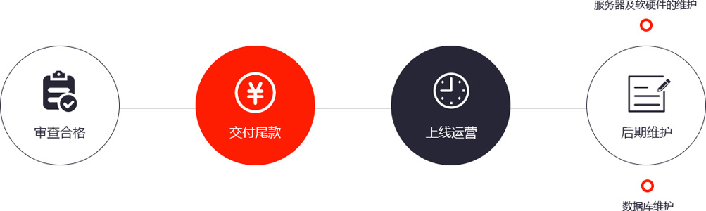 客戶按照合同規(guī)定支付后期款,龍創(chuàng)網(wǎng)絡(luò)在收到款后將所有網(wǎng)站在互聯(lián)網(wǎng)上發(fā)布,對客戶進(jìn)行必要使用培訓(xùn)。